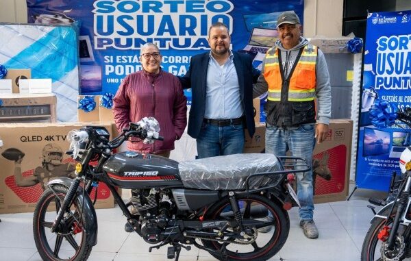 Posteriormente dio inicio el sorteo, donde Juan Carlos Velasco pidió a dos de los usuarios presentes extrajeran los primeros boletos correspondientes a las dos motocicletas de la marca Islo, Trip 150, cuyos agraciados resultaron ser Armando Huerta Muñoz, con número de cuenta 0690182200; y, María Guadalupe Barrera Gutiérrez, con número de cuenta 0320225200.