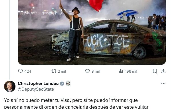 Ante la publicación de Melissa Cornejo, Christopher Landau, subsecretario de Estado estadounidense, dio la orden para cancelarle la visa, aunque después se confirmó que ella no tenía una.