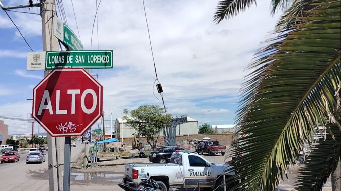 Un accidente vial se registró en el cruce de la avenida Tecnológico y la avenida Lomas de San Lorenzo, a un costado de la colonia Lotes Urbanos, en el sector nororiente de Delicias, donde se vieron involucrados dos vehículos, uno de ellos una motocicleta tipo 250Z en color negro con rojo y un automóvil Nissan Sentra en color negro.