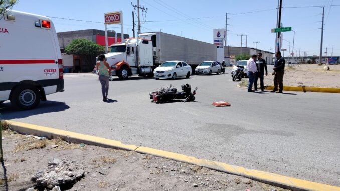 Un motociclista resultó lesionado y fue atendido por paramédicos de Cruz Roja Mexicana tras verse involucrado en un choque ocurrido en el sector oriente de la ciudad de Delicias, sin que fuera necesario su traslado a un hospital.