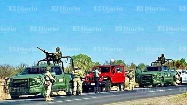 Una movilización de corporaciones de seguridad se registró sobre la carretera federal 45, a la altura del municipio de Meoqui, donde autoridades federales y municipales realizaron la revisión y posterior aseguramiento de un vehículo tipo Jeep Rubicon color rojo.