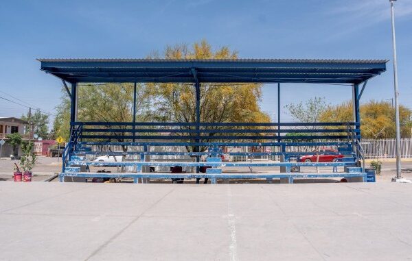 La Dirección de Obras Públicas de Delicias avanza en la fase final de la construcción de una techumbre sobre las gradas en la cancha de la plaza principal de la colonia Campesina, informó su titular, Alfonso Rodríguez Porras. El proyecto forma parte de las obras ejecutadas a través del esquema de presupuesto participativo.