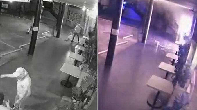 Aquí el momento en que los agresores golpearon a un guardia y prendieron fuego al establecimiento Yoyas.