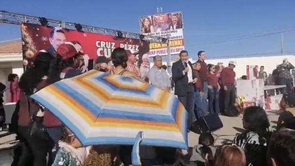 Acompañado del ex alcalde de Delicias Eliseo Compean y de su integrante de equipo Luis Villalobos, el alcalde de Juárez, Cruz Pérez Cuellar, deseo una feliz navidad y un próspero año nuevo a los centenares de delicienses que se dieron cita en la Macroplaza.