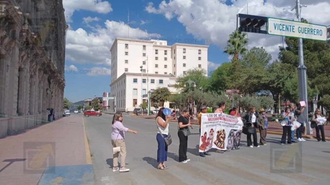 Chihuahua.- Un grupo de docentes inconformes alzó la voz frente a la sede de la Secretaría de Educación y Deporte para rechazar la recomendación emitida a favor del exgobernador César Horacio D.J., señalando que mientras se protege a personajes con poder, sus propias quejas han sido minimizadas y desechadas. Tras permanecer a las puertas del edificio decidieron bloquear la avenida Aldama frente a palacio.