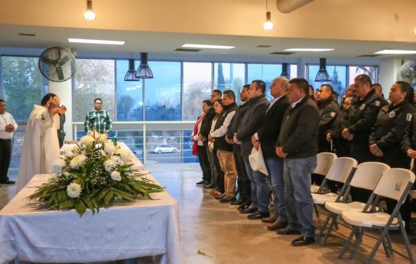 Durante el acto religioso, oficiado por Fray Gerardo, de la orden de los Franciscanos, y donde también estuvo presente el director de Seguridad Pública, Víctor Hugo Soto, así como elementos activos de la corporación, el alcalde destacó que esta celebración se ha convertido en una tradición de la dirección de Seguridad Pública, al iniciar la conmemoración encomendándose a Dios y recibiendo la bendición para el año 2026, tanto para los elementos activos como para sus familias.