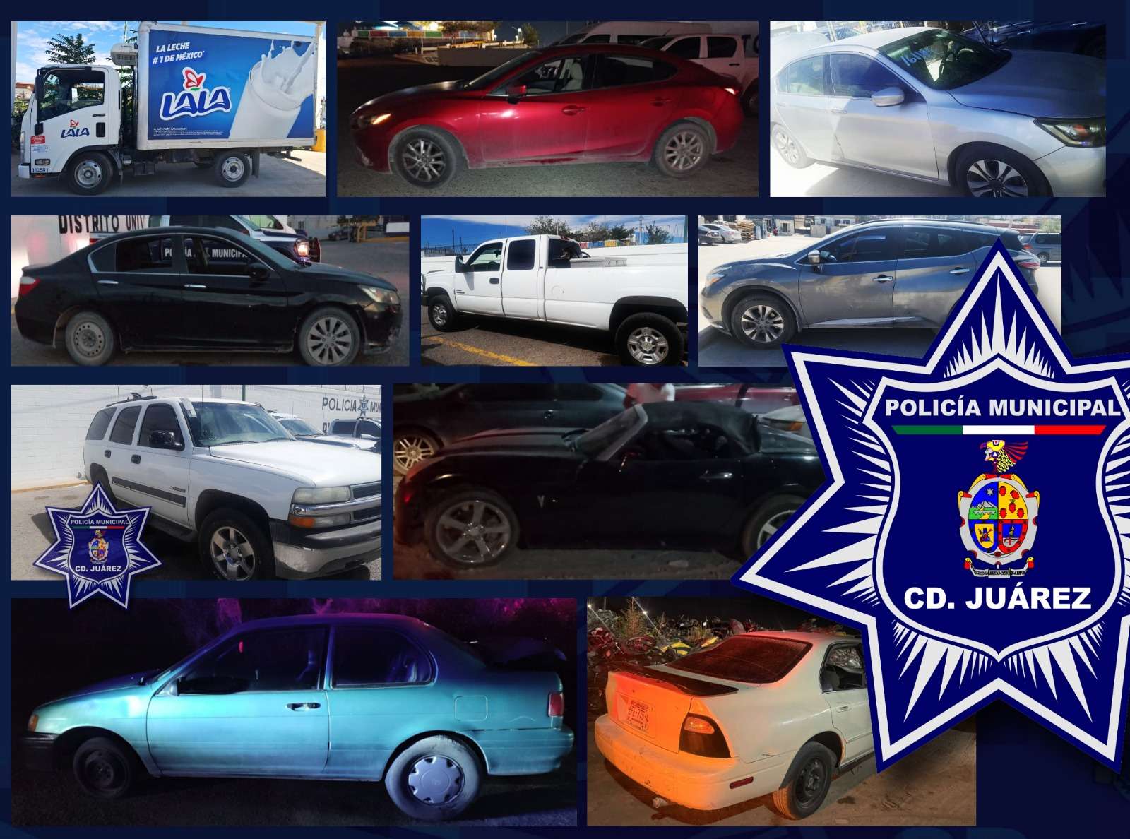 Ciudad Juárez .-Elementos de la Secretaría de Seguridad Pública Municipal, adscritos a los distintos distritos policiales, durante las últimas 48 horas lograron la recuperación de diez vehículos que cuentan con reporte de robo de días o meses atrás.