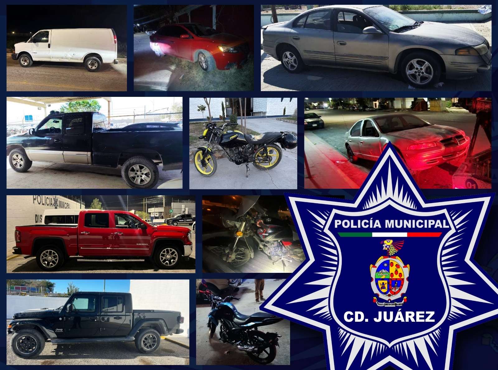 Ciudad Juárez.- Elementos de la Secretaría de Seguridad Pública Municipal, adscritos a los distintos distritos policiales, lograron la recuperación de diezvehículos que cuentan con reporte de robo de días o meses atrás.