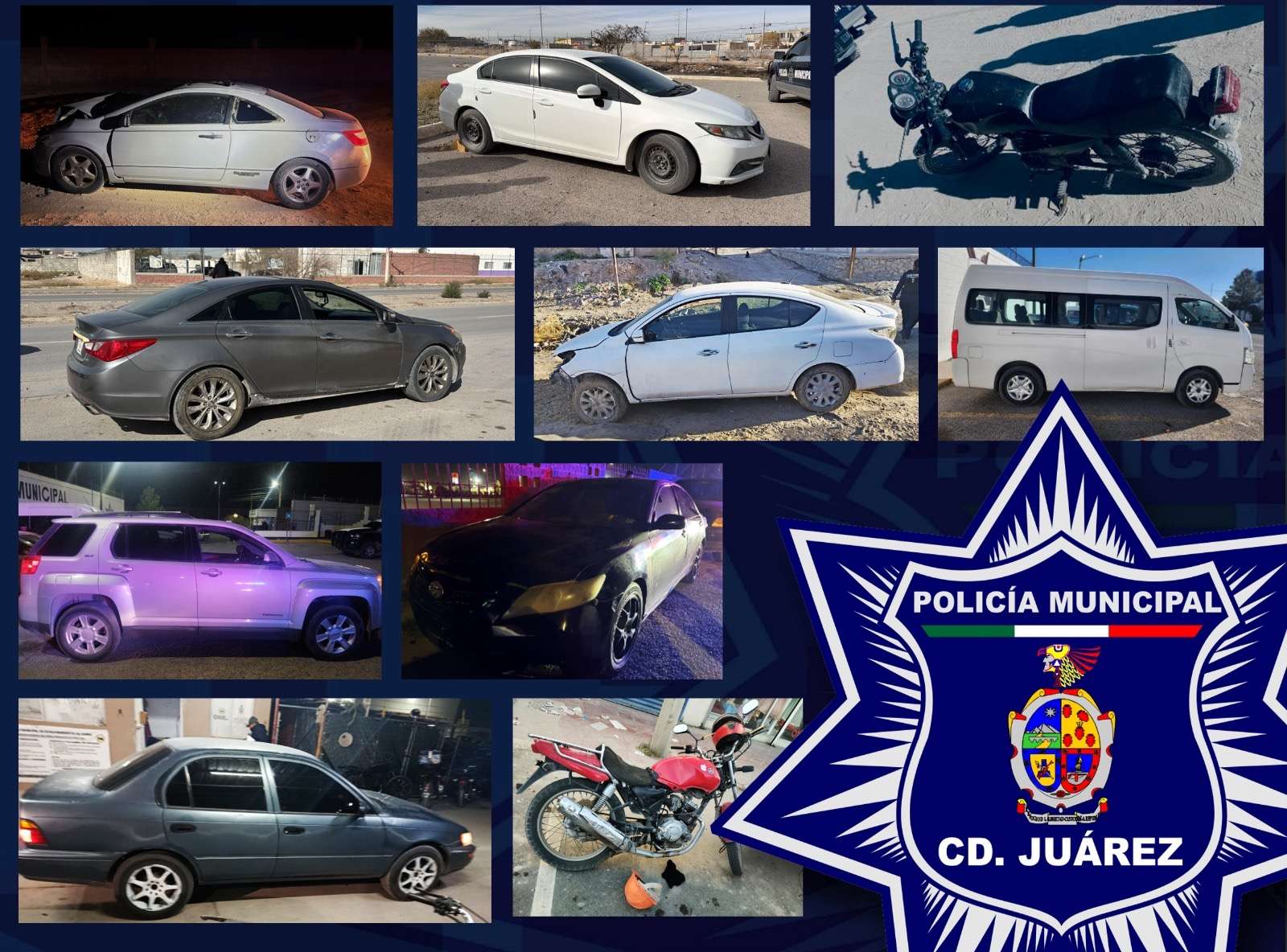 Ciudad Juárez.- Elementos de la Secretaría de Seguridad Pública Municipal, adscritos a los distintos distritos policiales, lograron la recuperación de docevehículos que cuentan con reporte de robo de días o meses atrás.