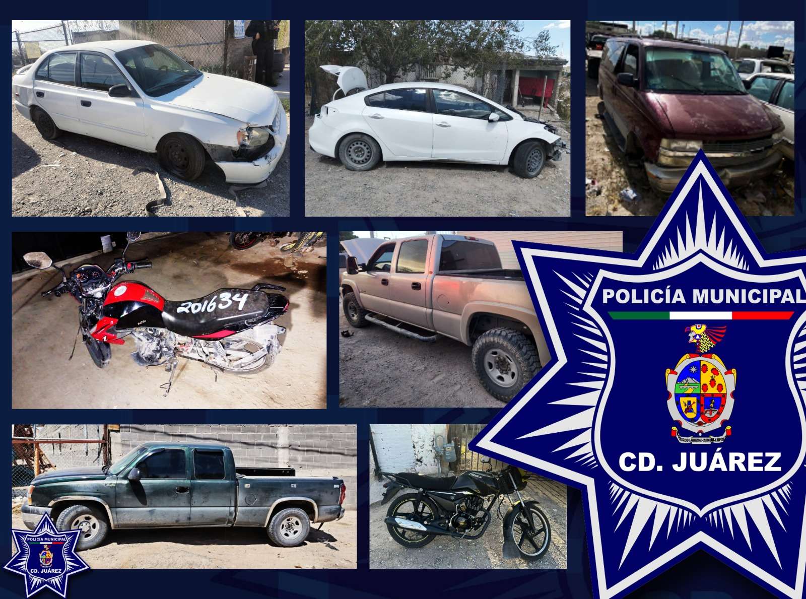 Ciudad Juárez.- Elementos de la Secretaría de Seguridad Pública Municipal, adscritos a los distintos distritos policiales, durante las últimas 24 horas lograron la recuperación de siete vehículos que cuentan con reporte de robo de días o meses atrás.