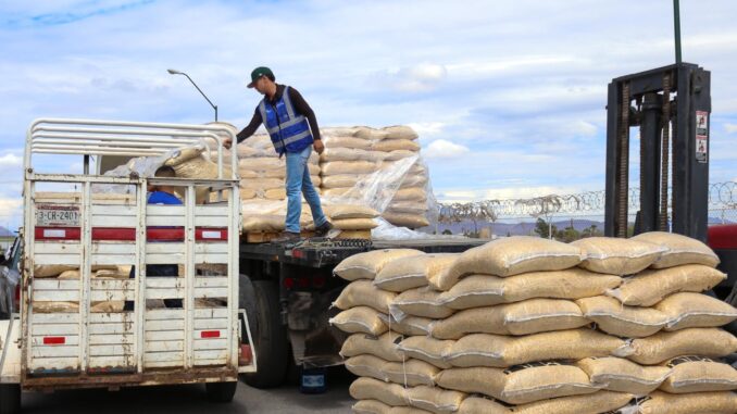 En total, se entregaron 36 toneladas de maíz rolado a 24 productores beneficiados, recibiendo cada uno tonelada y media de alimento. El esquema de apoyo contempla un subsidio de 6 mil pesos por tonelada por parte del Gobierno del Estado, por lo que los productores únicamente aportarán 3 mil 600 pesos, facilitando así el acceso a este insumo básico para la alimentación del ganado.