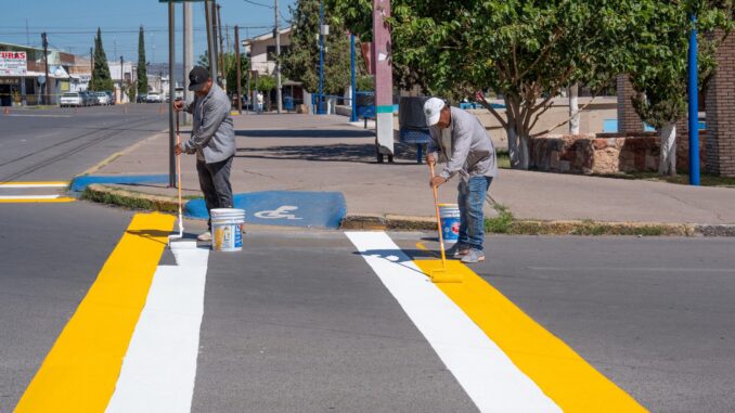 La sub dirección de Vialidad de Delicias comenzó esta semana con los trabajos de aplicación de pintura en cruceros y pasos peatonales de distintos puntos de la ciudad, atendiendo solicitudes hechas por la ciudadanía a través del presupuesto participativo. Los trabajos incluyen la delimitación de carriles y la rehabilitación de señalamientos horizontales en áreas de mayor afluencia.