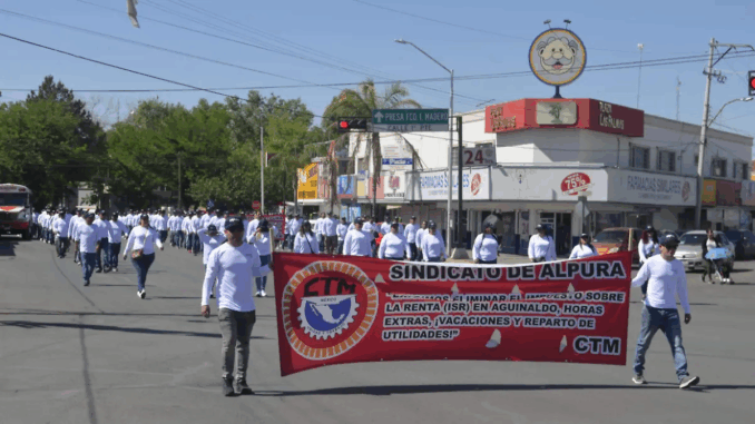 Trabajadores de distintas organizaciones gremiales se congregaron en la plaza Carranza, en la ciudad de Delicias, de donde partieron los contingentes por la avenida Río San Pedro, para tomar por el círculo del Mercado Juárez y después por la Calle 3ª Poniente, rumbo a la plaza del Santuario, donde tuvo lugar una concentración.