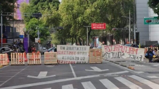 Se cumplen 40 horas de bloqueo a la circulación en el cruce de Paseo de la Reforma e Insurgentes por parte de estudiantes normalistas de Chiapas, quienes exigen el esclarecimiento de la muerte de uno de sus compañeros.