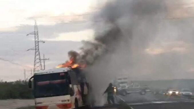 Camargo.- Un autobús de la empresa Rápidos Delicias se incendió en el kilómetro 6 de la carretera libre Camargo-Jiménez. Afortunadamente, no hubo víctimas, ya que los pasajeros, incluyendo familias completas, fueron evacuados a tiempo y transportados en un camión urbano de la misma compañía.