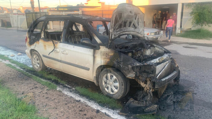 Chihuahua.- Una camioneta tipo minivan se incendió la tarde de este miércoles en la colonia Villas del Rey, entre las calles Arqueros y Armaduras, justo frente a un parque público. El vehículo siniestrado es una Chrysler Voyager de color blanco.