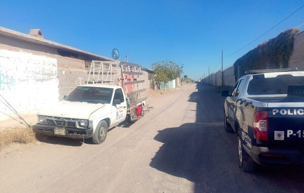 De acuerdo con el informe policial, durante un patrullaje sobre la calle Emiliano J. Laing y avenida 12 y Media Sur, los agentes se percataron de una camioneta blanca con caja modificada para transporte. La unidad coincidía con las características de un vehículo denunciado como robado anteriormente.