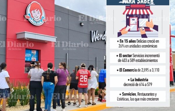 El crecimiento económico de Delicias se ha reflejado en el aumento del número de empresas y establecimientos durante los últimos 15 años. De acuerdo con datos del Instituto Nacional de Estadística y Geografía (Inegi), a través del Directorio Estadístico Nacional de Unidades Económicas (Denue), el municipio registró un incremento del 26 por ciento en este rubro.
