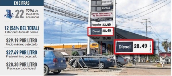 A pesar de los acuerdos federales con empresarios de hidrocarburos en todo el país de sostener el diésel a un precio máximo de 28.30 pesos, sigue subiendo y se mantiene arriba desde los primeros días del mes de abril.