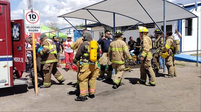 Las corporaciones de atención prehospitalaria se sumaron con varias unidades: Comisión Estatal de Emergencias, Cruz Ámbar y Cruz Roja Mexicana, además de la ambulancia número 10 del departamento de Bomberos y a la par, la máquina de bomberos permaneció en el lugar, y sus elementos ejecutaron el rescate simulado de al menos 3 personas en el interior de las instalaciones.