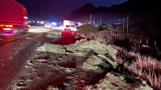 La noche de este sábado se han registrado múltiples percances viales, entre choques y volcaduras, luego de que un tractocamión Quinta Rueda tirara cerca de 12 pacas sobre la cinta asfáltica a la altura del kilómetro 187 de la carretera federal número 45, entre la comunidad de Lázaro Cárdenas, municipio de Meoqui, y la ciudad de Chihuahua, por lo que varios carriles quedaron obstruidos generando condiciones de alto riesgo para quienes circulan de norte a sur