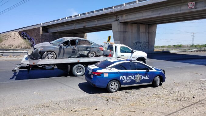 Una persona lesionada y la pérdida total de un automóvil Nissan Sentra color gris fue el saldo de un accidente vial ocurrido sobre la carretera federal, a la altura del puente del panteón de Meoqui, donde elementos del Departamento de Vialidad de Seguridad Pública Municipal y paramédicos de la Cruz Roja acudieron de inmediato, trasladando a la persona herida a un nosocomio.