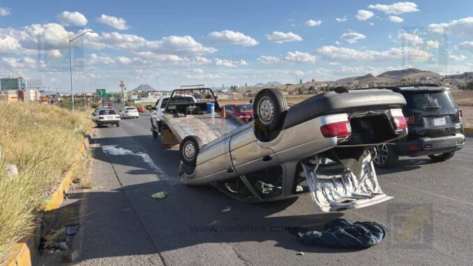 Chihuahua.- Una mujer resultó lesionada la tarde de este viernes luego de un accidente con volcadura sobre el Circuito Universitario, justo frente al fraccionamiento Santa Clara. De acuerdo con el reporte preliminar, el conductor de un automóvil que se desplazaba de norte a sur perdió el control del volante luego de que una camioneta pick up le cerrara el paso.